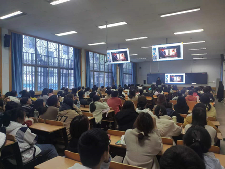 高警官首先向同学们展示了近几个月高校发生的真实诈骗案例,提醒大家诈骗离我们并不遥远,要时刻保持警惕,又通过一段视频介绍了诈骗的危害,接着对大学生群体中常见的“杀猪盘”、网络兼职刷单、校园贷、冒充电商物流客服诈骗、冒充公检法诈骗、游戏充值装备诈骗等骗局进行了细致剖析,并通过展示犯罪分子的诈骗心理、诈骗作案过程及诈骗聊天记录等方式帮助同学们理解诈骗套路,更好地掌握防范方法。最后,高警官结合丰富的反诈骗经验、专业的反诈骗知识以及真实案例,向同学们宣传如何预防电信诈骗。