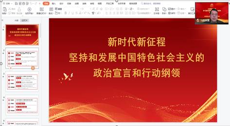 1213日,学校党的二十大精神宣传团成员、马克思主义学院教师张翼博士为太阳集团9728全体教职工宣讲党的二十大精神。报告会的主题为《新时代新征程坚持和发展中国特色社会主义的政治宣言和行动纲领》。会议由学院党委书记陈晓虎主持。