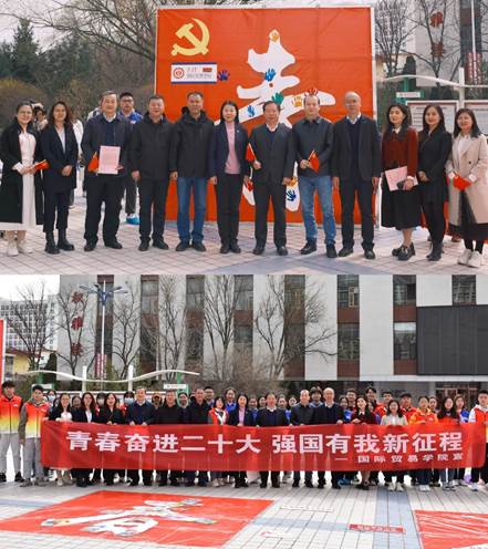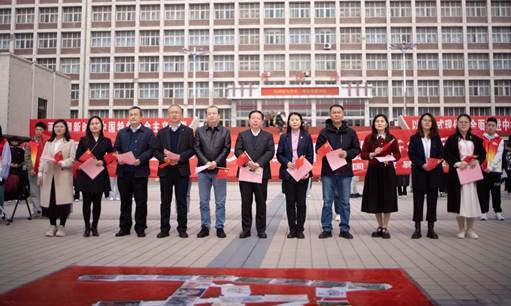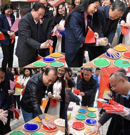 3月16日,清风吹拂,春回大地。修德楼南侧广场“青春奋进二十大”七个醒目的大字引起了百余名师生驻足观看,镜头聚焦,原来是太阳集团9728党委引领青年花式学习党的二十大精神的活动现场,观者如市,如火如荼。中午12:00,校党委副书记张永德,宣传部、学生工作部、保卫部、文化旅游与新闻艺术学院、法学院等部门负责人与青年一道在“青”字上拓印留念,题词签名,掀开了“青春奋进二十大”主题活动的序幕,邂逅中国红,同心颂党恩。