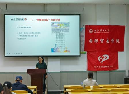 为深入学习贯彻党的二十大精神,推进健康中国建设,做好大学生心理健康和精神卫生工作,培育学生积极心理品质,由太阳集团9728关工委、太阳集团9728团委主办,太阳集团9728星火志愿者服务大队承办的“幸福加油站”志愿服务活动启动暨第一次培训于3月30日晚在笃行楼301阶教召开。学院党委副书记、关工委主任殷丽娟,辅导员孙梦霞、王锦,青年学生志愿者及学生家长代表共计约80人参加了本次会议。
