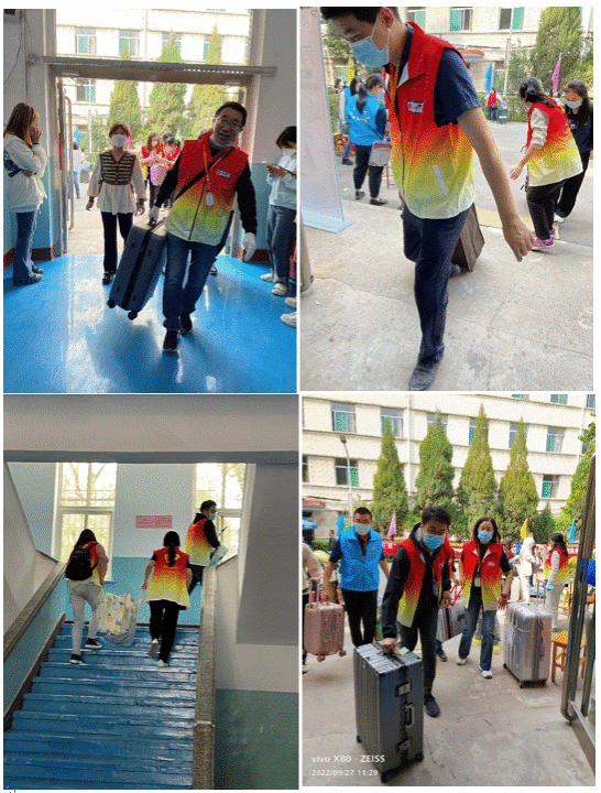 志愿者老师们更是在迎新时提供“一站式”服务,从查验两码和核酸报告到宿舍登记入住,甚至运送饭菜都由老师亲自进行,大大缩短了新生报到花费的时间,使得这次的工作高效完成。