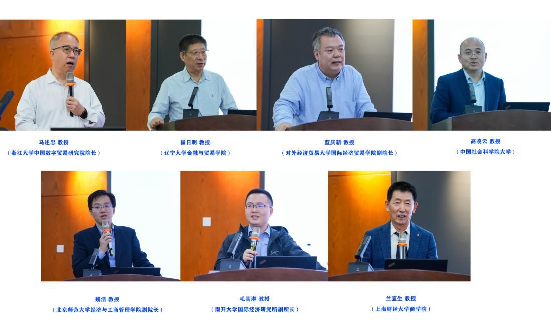 会议下半场,中国社会科学院大学高凌云教授分享了《世界经济》服务国际贸易学科的不足和努力方向,指出其在科学属性、平台功能和国际影响等方面存在不足,并将从开放化、平台化和国际化等方面展开改进工作。北京师范大学魏浩教授作了题为《中国进口贸易政策的调整空间》的研究报告,他指出,积极扩大进口作为国家重大战略,在特定经济发展阶段具有不可替代的作用,从宏观和微观视角分析了中国进口发展的事实和政策调整的关键问题,并提出展望。南开大学毛其淋教授的报告题目为《服务业开放的绿色创新效应》,他强调企业绿色创新是实现绿色转型的重要途径,提高企业生产率、促进企业规模扩张和人力资本升级是服务业开放促进企业绿色创新的重要渠道。上海财经大学兰宜生教授对中国经贸问题进行了独到的观察与思考,他指出中国经济由短缺阶段过渡为过剩阶段,应通过增加收入、刺激消费,提高人民币汇率等促进经济发展,掌握中国经济发展的自主权。