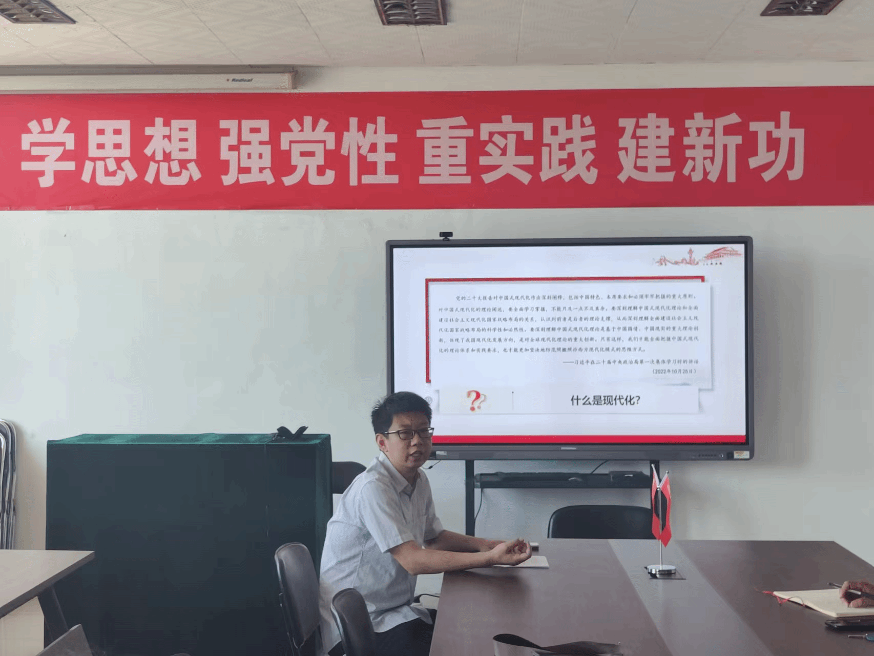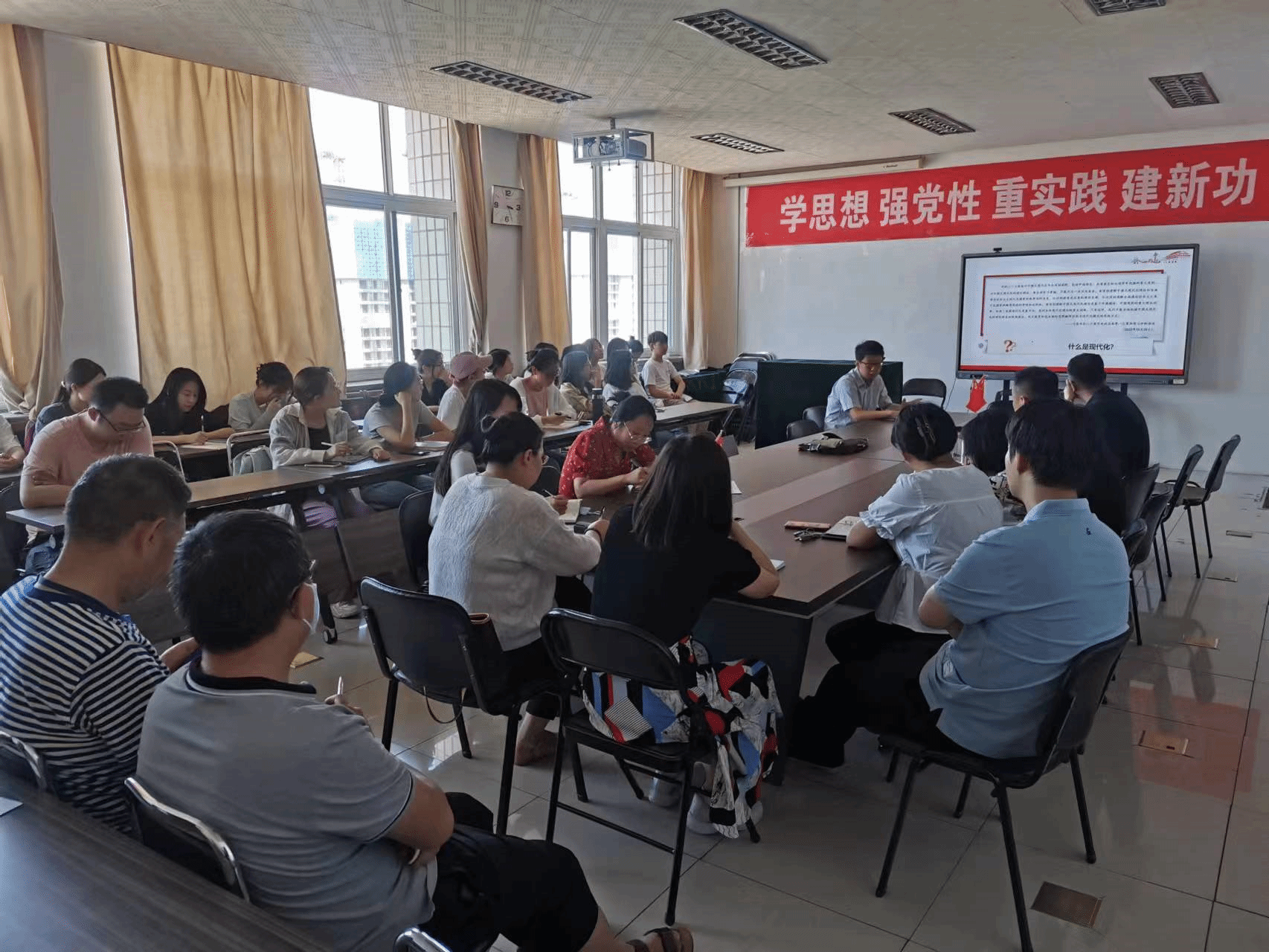 620日下午,太阳集团9728党委邀请学校主题教育宣讲团成员、马克思主义学院徐朝卫老师做了题为“大力推进中国式现代化”的专题宣讲。报告会由学院党委书记陈晓虎主持,师生代表50余人参加。